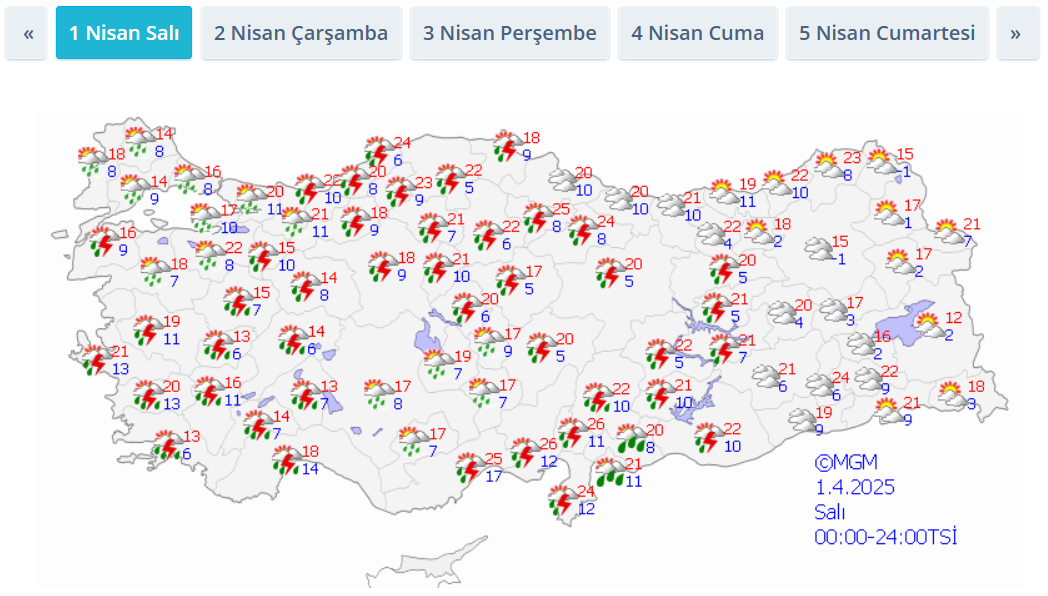 Meteoroloji, Afyonkarahisar, Eskişehir (güney ilçeleri), Balıkesir (batı ilçeleri), Kahramanmaraş, Elazığ, Gaziantep ve Şanlıurfa’da kuvvetli yağış beklerken, Manisa, İzmir, Aydın, Denizli, Muğla, Burdu, Isparta ve Antalya’ya da sarı kodlu ihtarda bulundu.