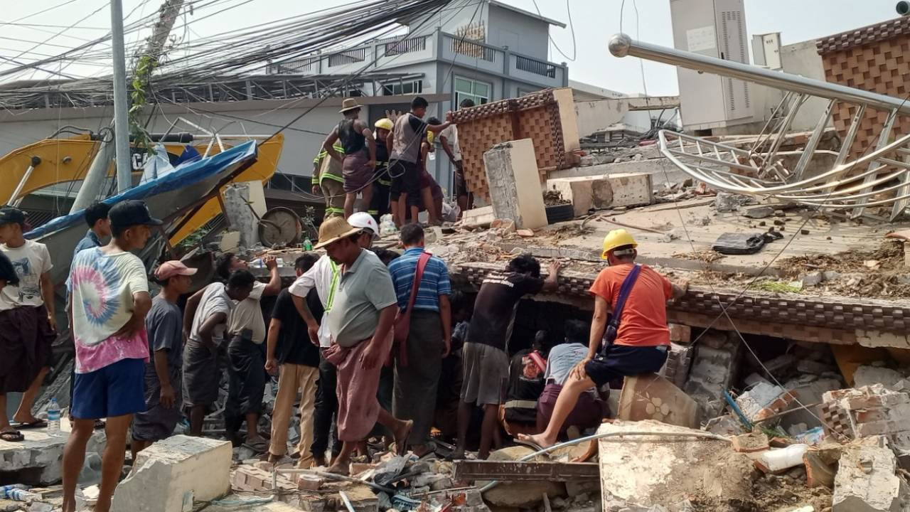 Enkazlara müdahale eden arama kurtarma takımları, bölgedeki çalışmaların kâfi ekipmana sahip olmayan küçük, kendi kendine örgütlenmiş mahallî kümeler tarafından yürütüldüğünü söyledi. Mandalay’da enkaz altında sıkışan çok sayıda insanın fakat ağır makineler ve insani yardım vazifelisi ile çıkarılabileceği de belirtiliyor.